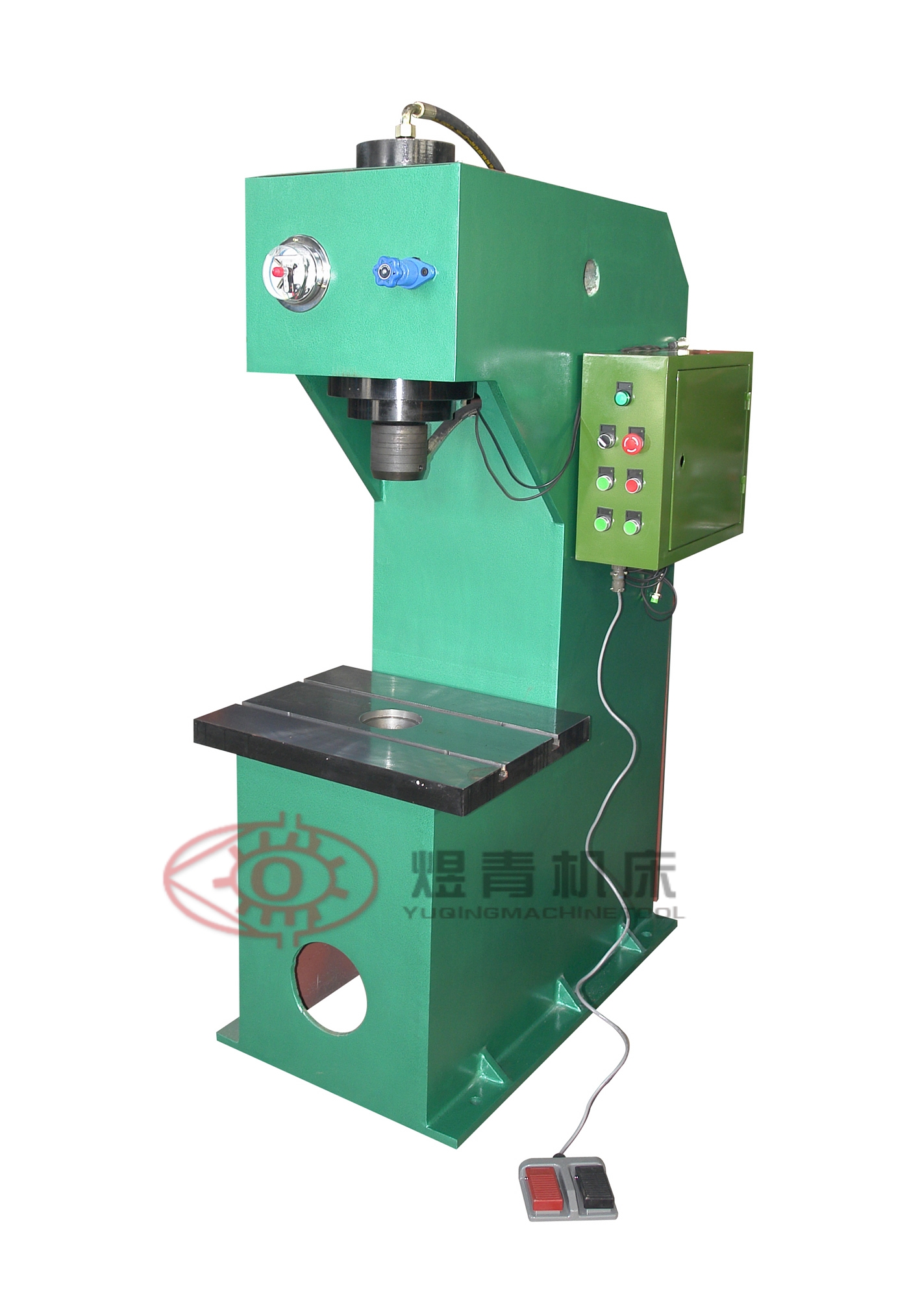 yq41-160T单臂液压机可作轴类和其他类似零件的校正工艺,也可做轴、套类零件的压装和简单板形零件的拉伸,成型及落料等工艺,此机手脚联动操纵,操作简单。液压系统采用电液换向阀,结构紧凑、安全可靠、动作灵敏。速度快能耗小,噪音低。