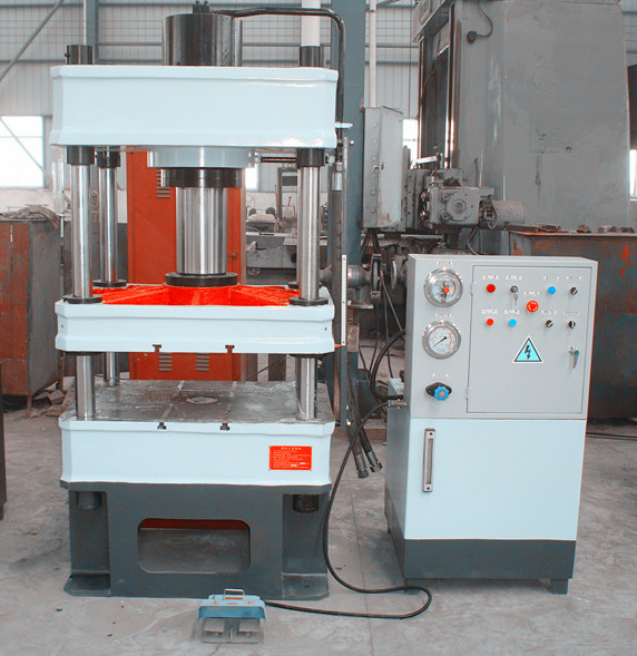 100吨三梁四柱液压机适用于金属材料的拉伸,弯曲、翻边、冷剂、冲裁等工艺,还适用于校正,压装、粉末制品、磨料制品压制成型以及塑料制品、绝缘材料的压制成形。